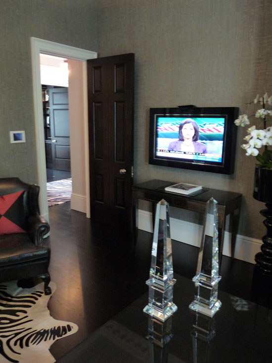 The result was a remarkably easy-to-use system where the end-user can quickly choose to control the lighting, temperature, and audio visual systems with minimal fuss. A whole-house entertainment system was installed, which allowed for high definition music and movies to be distributed throughout the home. The choice of entertainment, paired with the simplicity of the buildings environmental control, create a fantastic fusion of cutting edge technology with decadent period features. Please see the pictures below for more detail.
